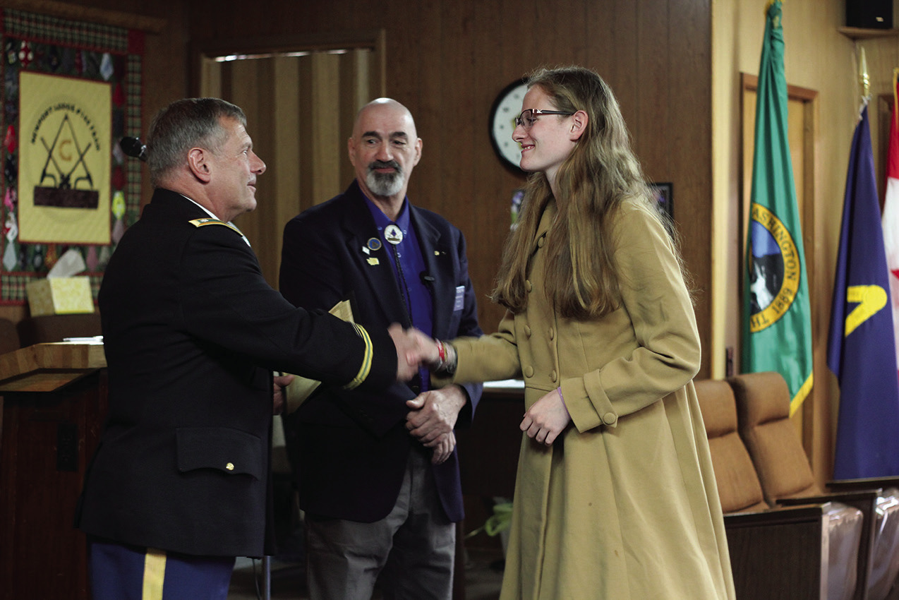 Aurelia Johnson of Newport High School shaking Bobby Coleman’s hand before receiving her award.