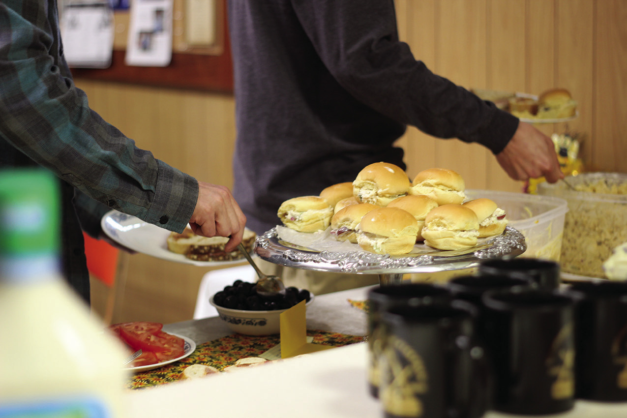 Attendees grabbing food after the awards ceremony.